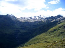 Über Nacht hat der Regen sich in Schnee verwandelt, die Gipfel sind mit einer hübschen Puderschicht bedeckt. Deshalb rät auch der Hüttenwirt vom Höhenweg in Richtung Kaltenberghütte ab, da Geröll und Steine mit Sicherheit vereist seien und die Jochüberquerung erheblich erschwerten. Außerdem erzählt er von diversen Rettungsaktionen per Hubschrauber, mit denen Wagemutige aus diesem Abschnitt gefischt wurden. Da auch meine Beine mittlerweile nicht mehr so ganz frisch sind und Richard auch Probleme mit seinen Schuhen hat, beschließen wir einstimmig den Abstieg nach St. Christoph mit anschließendem Wiederaufstieg zur Kaltenberghütte.
